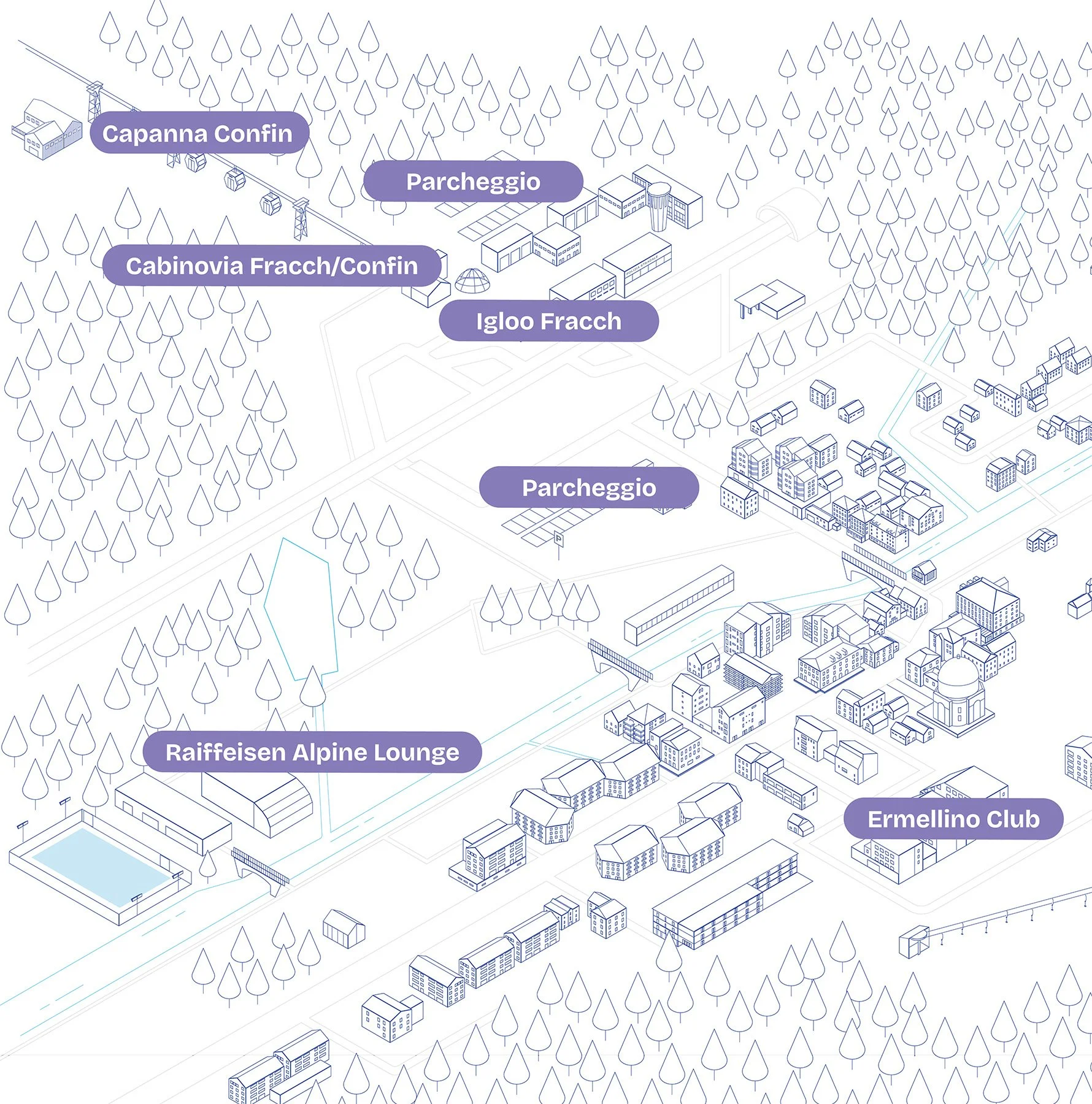 La cupola Igloo è posizionate alla stazione sciistica di arrivo di Confin, dove si può fare tappa per una suggestiva colazione sulla neve e per il classico aperitivo après-ski.